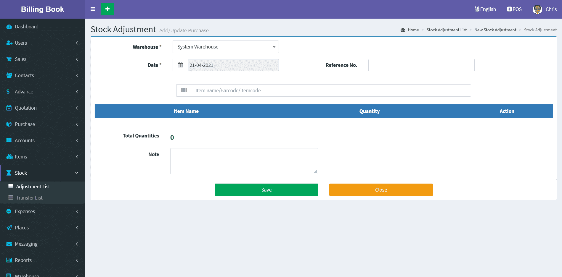 Adding a Items it's a very easy task. Enter Item name, Select Category, Unit, SKU(Optional Field), Alert Quantity(Optional field), Select Image(Optional field),Purchase Price(Without Tax), Select Tax, Tax Type(Inclusive / Exclusive), Profit Margin(in Percentage %) , Available/Current Stock(+/-) (Optional Field), Add Lot number(Optional), Expired Date(Optional) and click on Save button.
